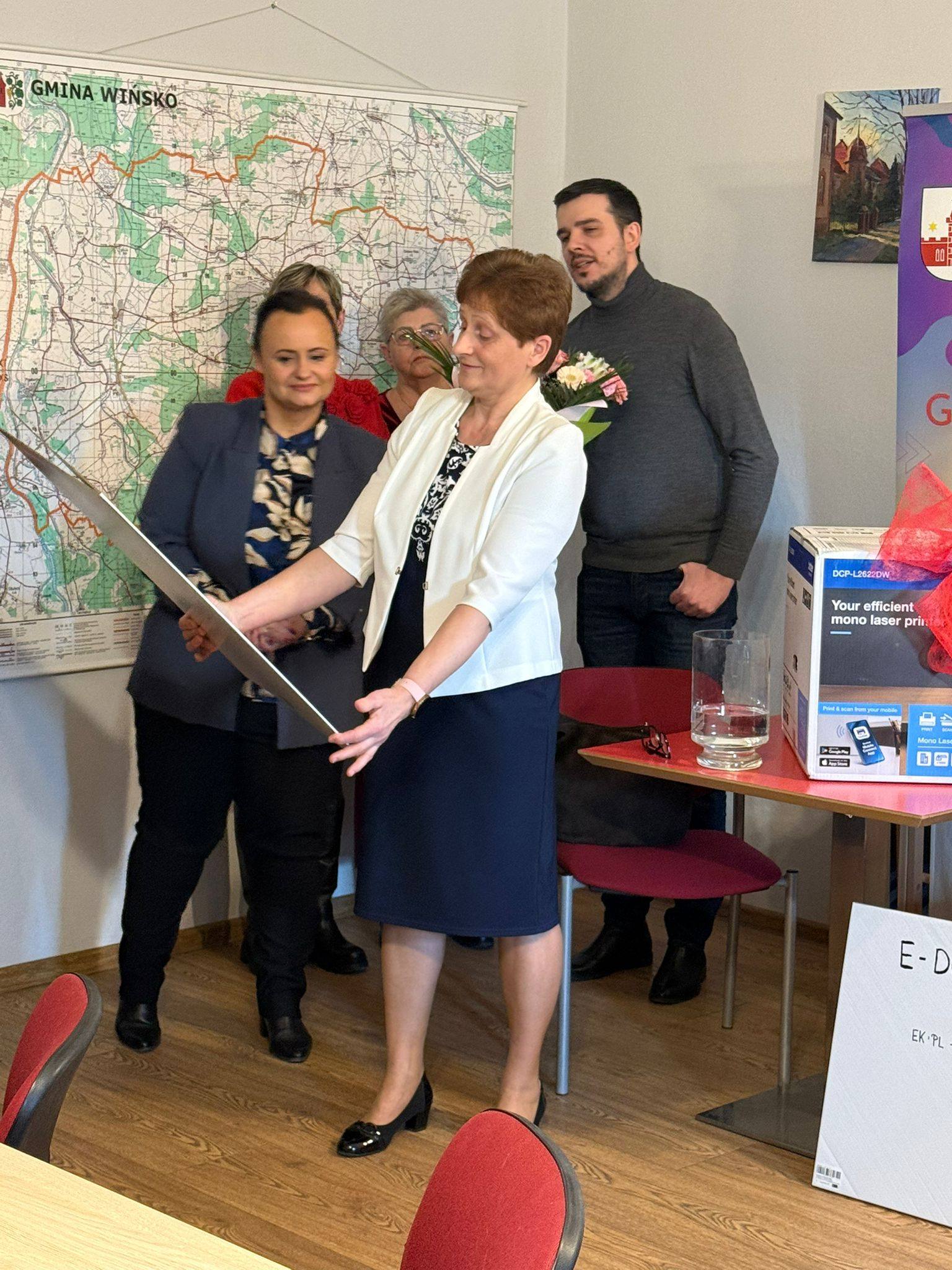 Z okazji przejścia na emeryturę żegnamy naszą Koleżankę, Panią Elę Kapnik, która przez wiele lat była związana z Referatem Gospodarki Nieruchomościami i Ochrony Środowiska. Jej rzetelność, otwartość i zaangażowanie na stałe wpisały się w codzienne funkcjonowanie urzędu.