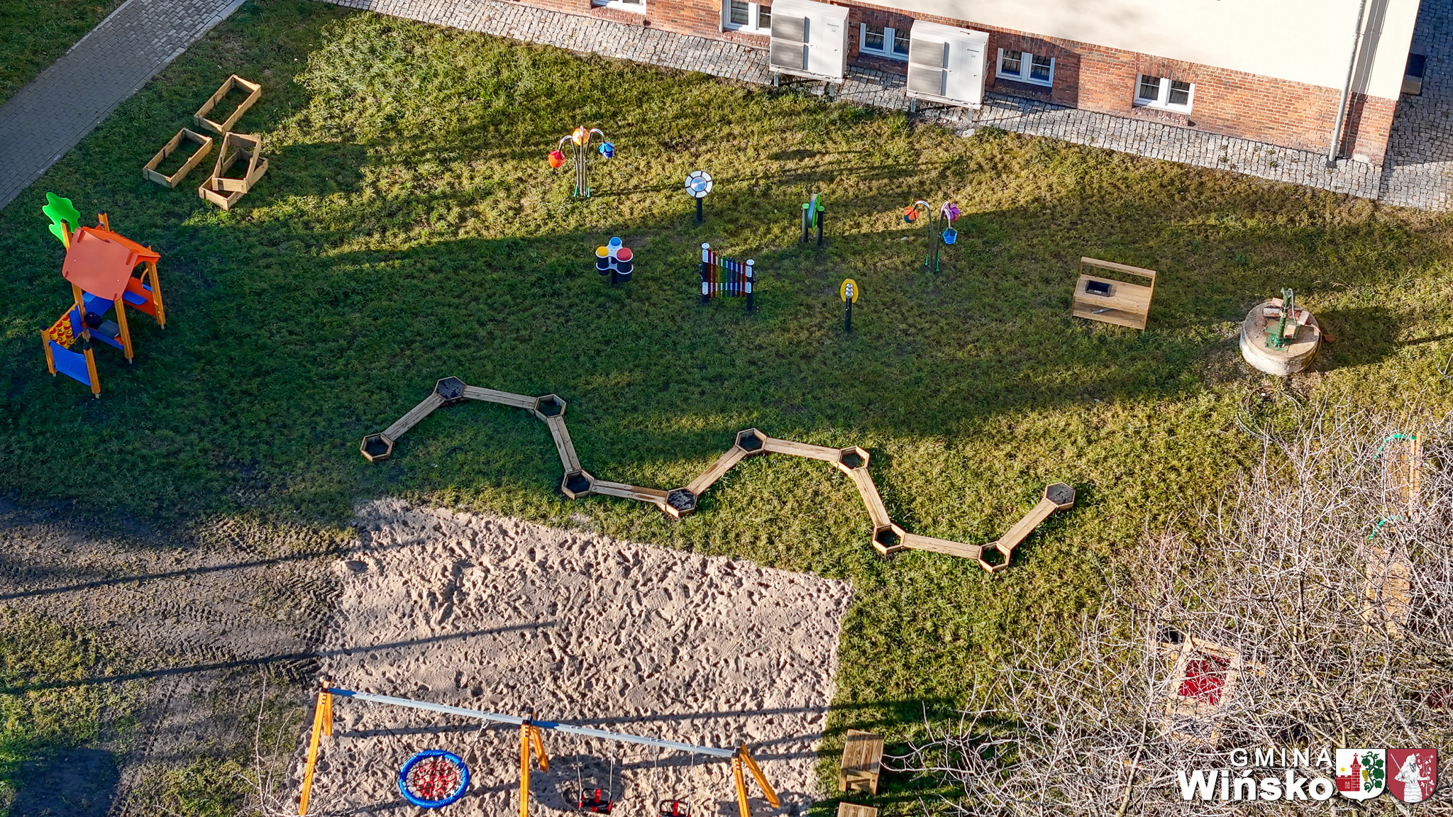 Z radością informujemy, że w 2025 roku przy filii Żłobka „Wyspa Skarbów” w Wińsku powstał nowoczesny sensoryczny plac zabaw w ramach programu „Aktywne Place Zabaw 2025”, pod nazwą projektu „Zabawy z przyrodą – Sensoryczny plac zabaw w Filii Żłobka Wyspa Skarbów – Wińsko ”.