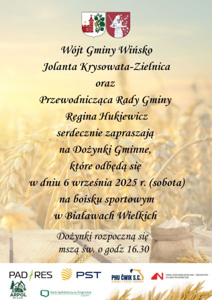 Dożynki już w sobotę 6 września 2025 Mariusz Gawlik2025-09-04T20:52:13+02:004 września 2025|Aktualności| Udostępnij FacebookXLinkedInWhatsAppEmail