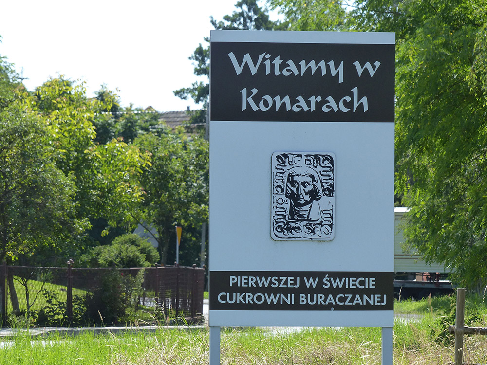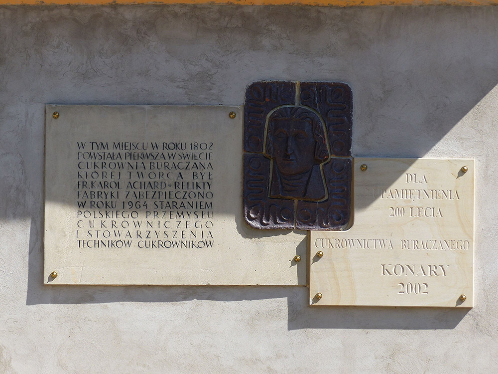 W roku 1799 Konary nabył Franz Carl Achard. Franz Achard był pracującym w Berlinie naukowcem, który pierwszy opracował technologię pozyskiwania cukru z buraków cukrowych. Dzięki pomocy króla Fryderyka Wilhelma III mógł zakupić Konary, by na ich terenie wybudować cukrownię. W roku 1801 Achard, zapoczątkował na terenie dóbr, uprawę buraków. Cukrownię założył w niewielkiej oficynie dworskiej. Jednak opracowana przez niego technologia była zbyt droga i pozwalała tylko na pozyskiwanie cukru brunatnego, który następnie przewożony był do rafinerii. Prowadzone na szeroką skalę doświadczenia naukowe wpędziły Acharda w długi. W roku 1807 spłonęła cukrownia. Dzięki wsparciu króla , w 1812 roku Achard wybudował nową cukrownię, która służyła również jako miejsce szkolenia i nauki technologii wyrobu cukru.