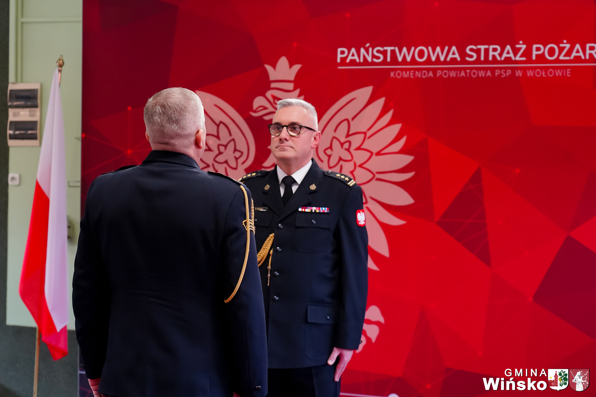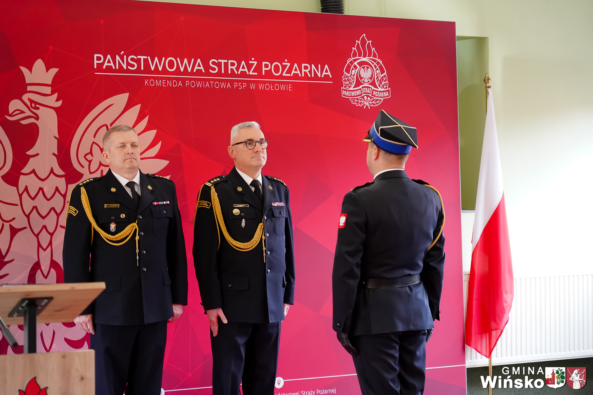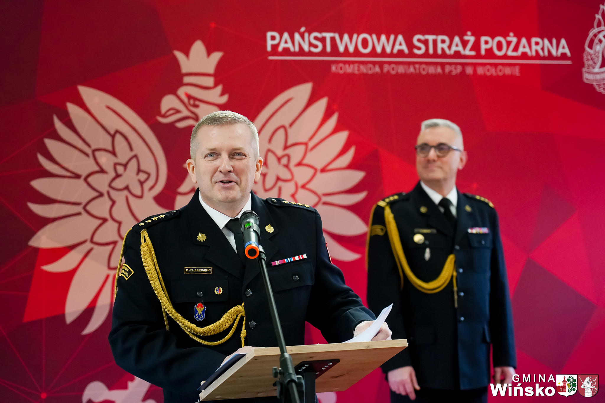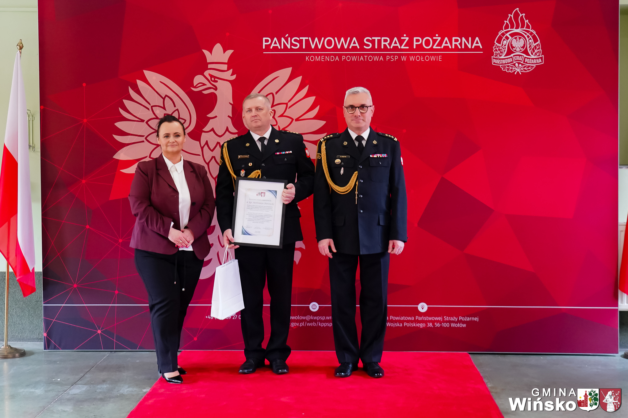 Gminę Wińsko podczas wydarzenia reprezentowała Monika Myrdzio, Zastępca Wójta Gminy Wińsko. W imieniu władz gminy złożyła nowo powołanemu Komendantowi serdeczne gratulacje oraz życzenia powodzenia w realizacji nowych obowiązków.