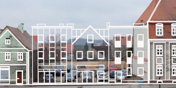 W tym miejscu powstaną 3 kamienice z 9 mieszkaniami, a na parterze będą lokale usługowe.