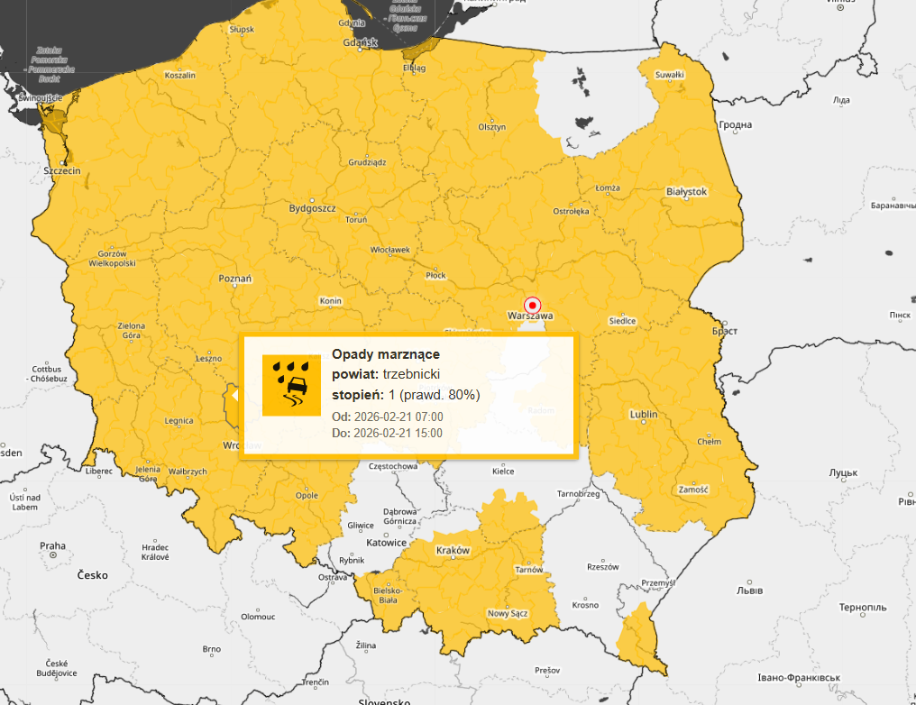⚠️ Ostrzeżenie meteorologiczne – Opady marznące ❄️