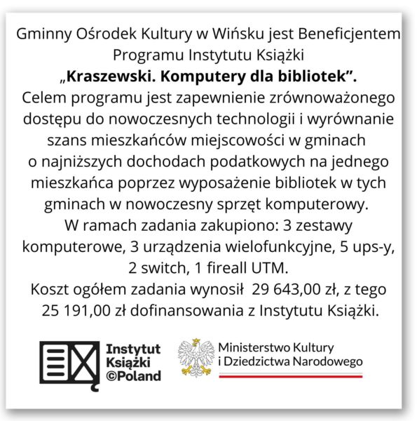 Program Instytutu Książki „Kraszewski. Komputery dla bibliotek” Instytut Książki Ministerstwo Kultury i Dziedzictwa Narodowego Mariusz Gawlik2025-11-25T16:20:38+01:0025 listopada 2025|Aktualności| Udostępnij FacebookXLinkedInWhatsAppEmail