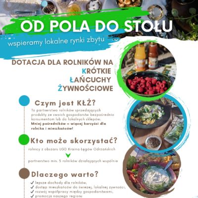 Lokalna Grupa Działania Kraina Łęgów Odrzańskich zaprasza rolników z terenu Gminy Wińsko na spotkanie sieciujące dotyczące Krótkich Łańcuchów Żywnościowych (KŁŻ).