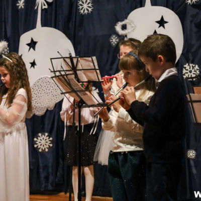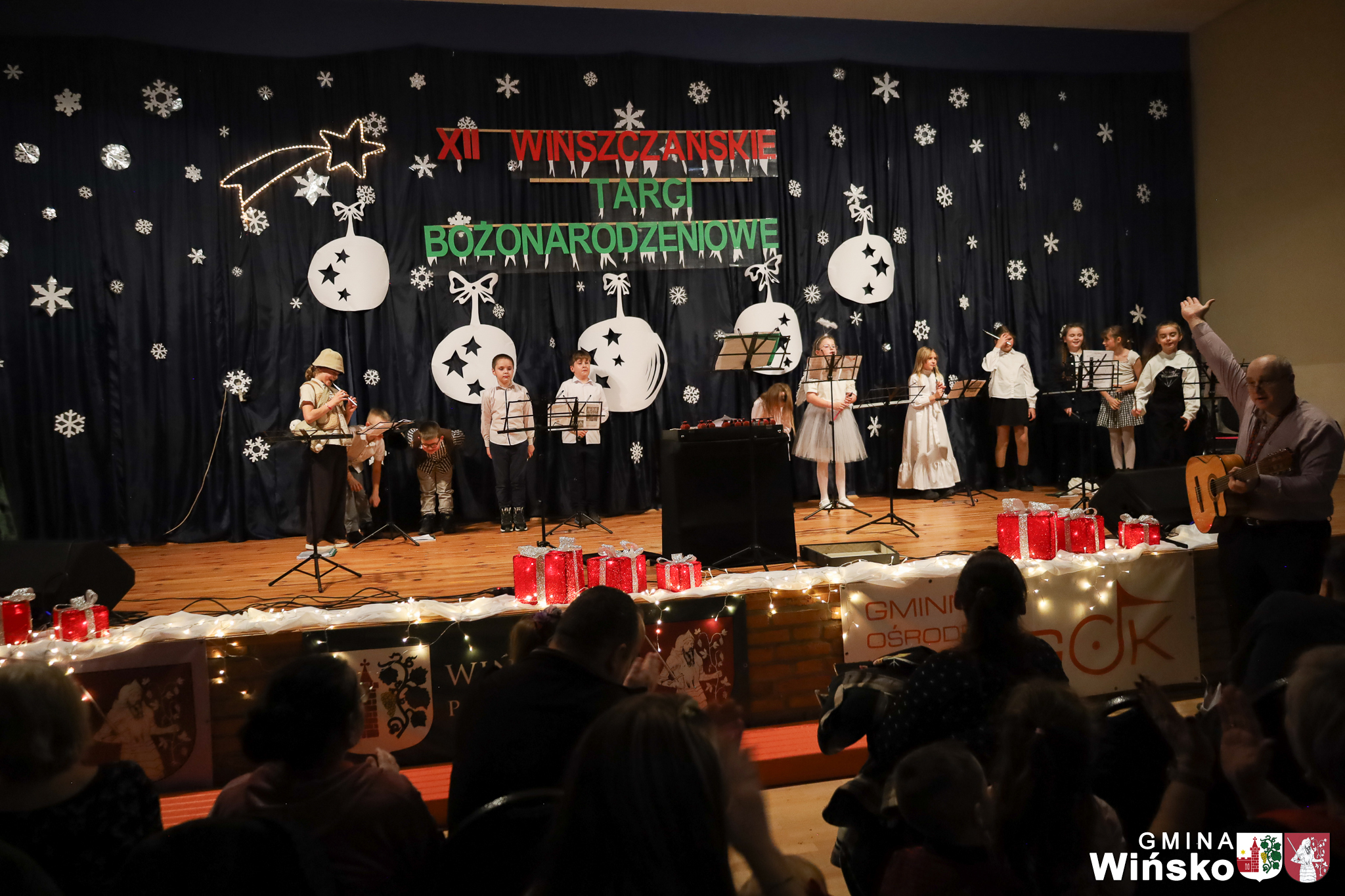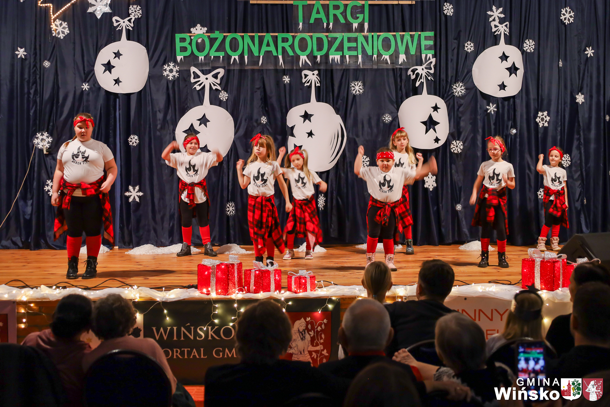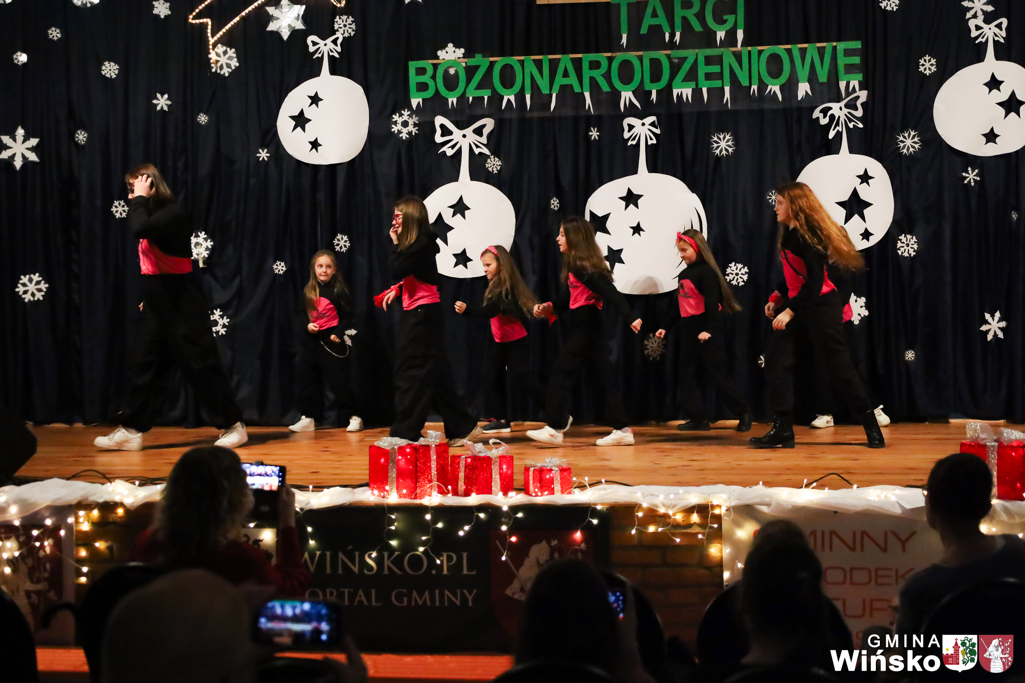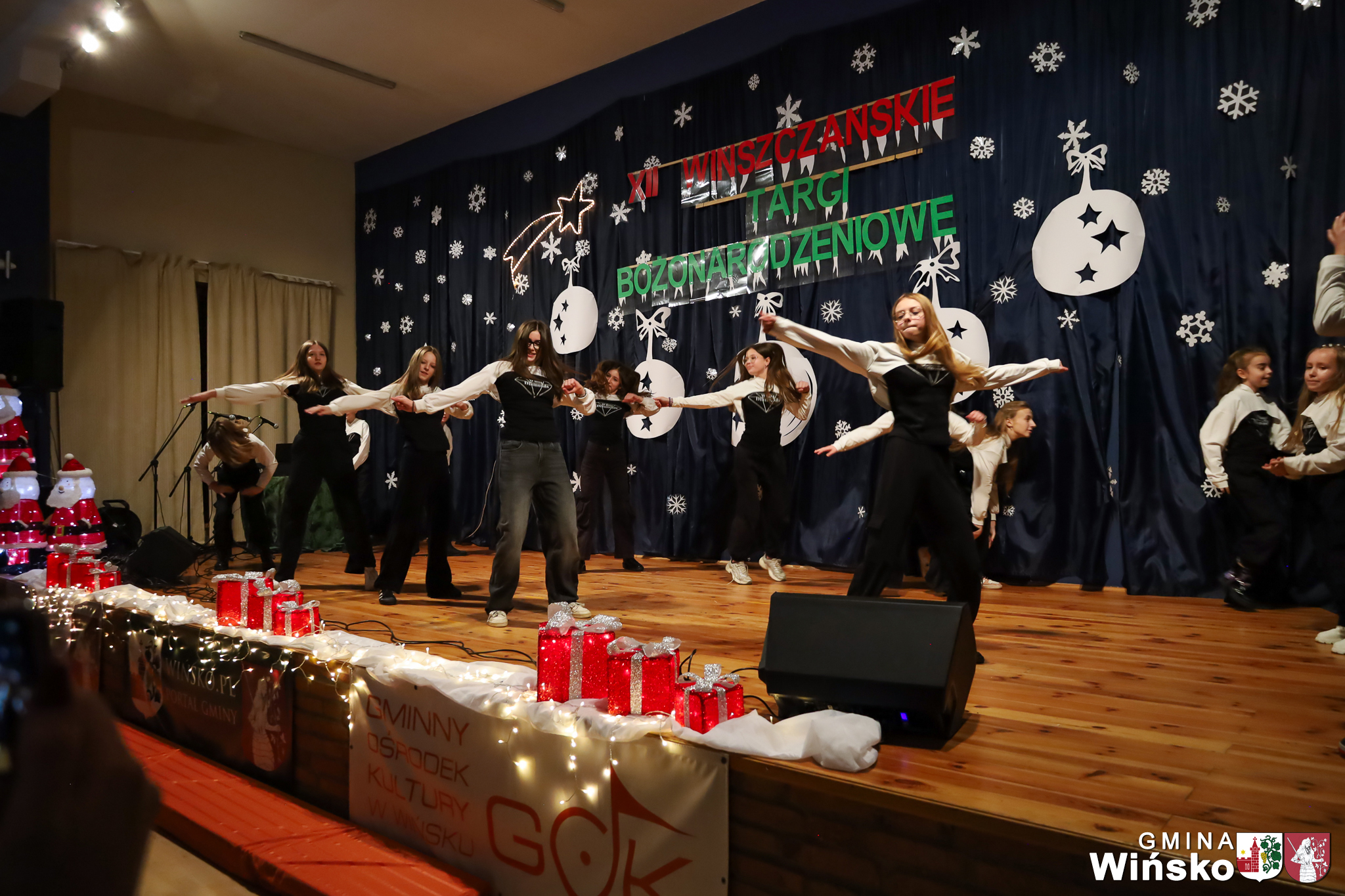 Na scenie wystąpił zespół Harfa, prezentując piękny świąteczny repertuar. Swoje umiejętności zaprezentowali również uczniowie szkół z terenu Gminy Wińsko, a także dzieci z Przedszkola Samorządowego w Wińsku, które oczarowały publiczność jasełkami, kolędami i tańcem. Nie zabrakło także energetycznych występów grup działających przy GOK: Black Fire, White Diamonds oraz Pink Dragons.