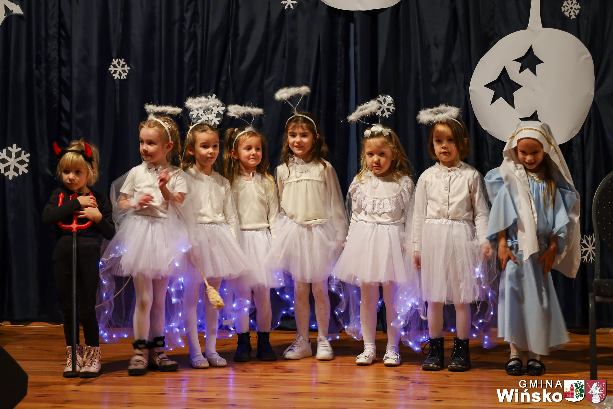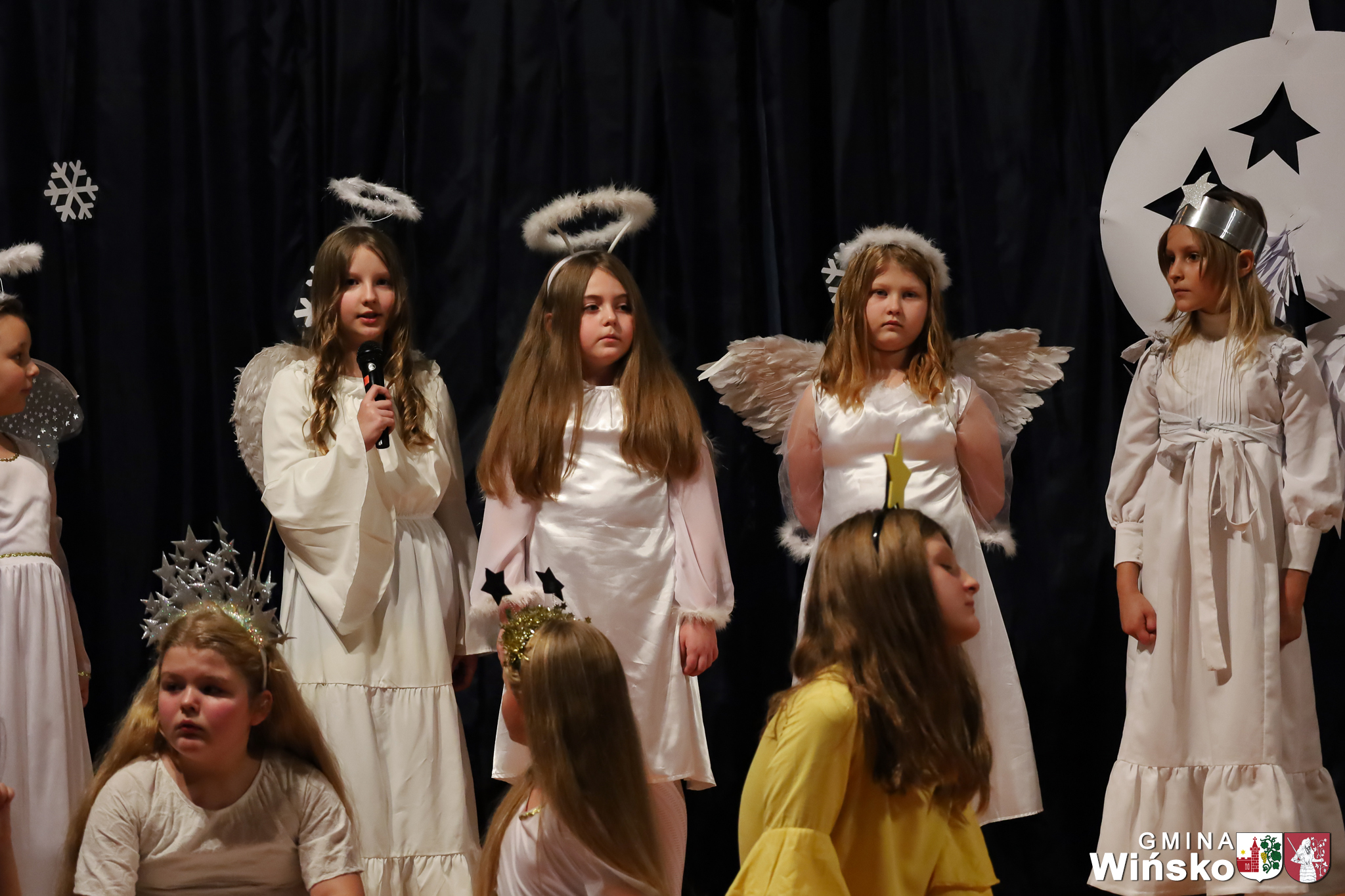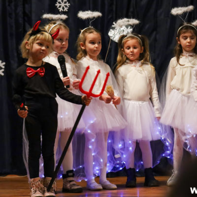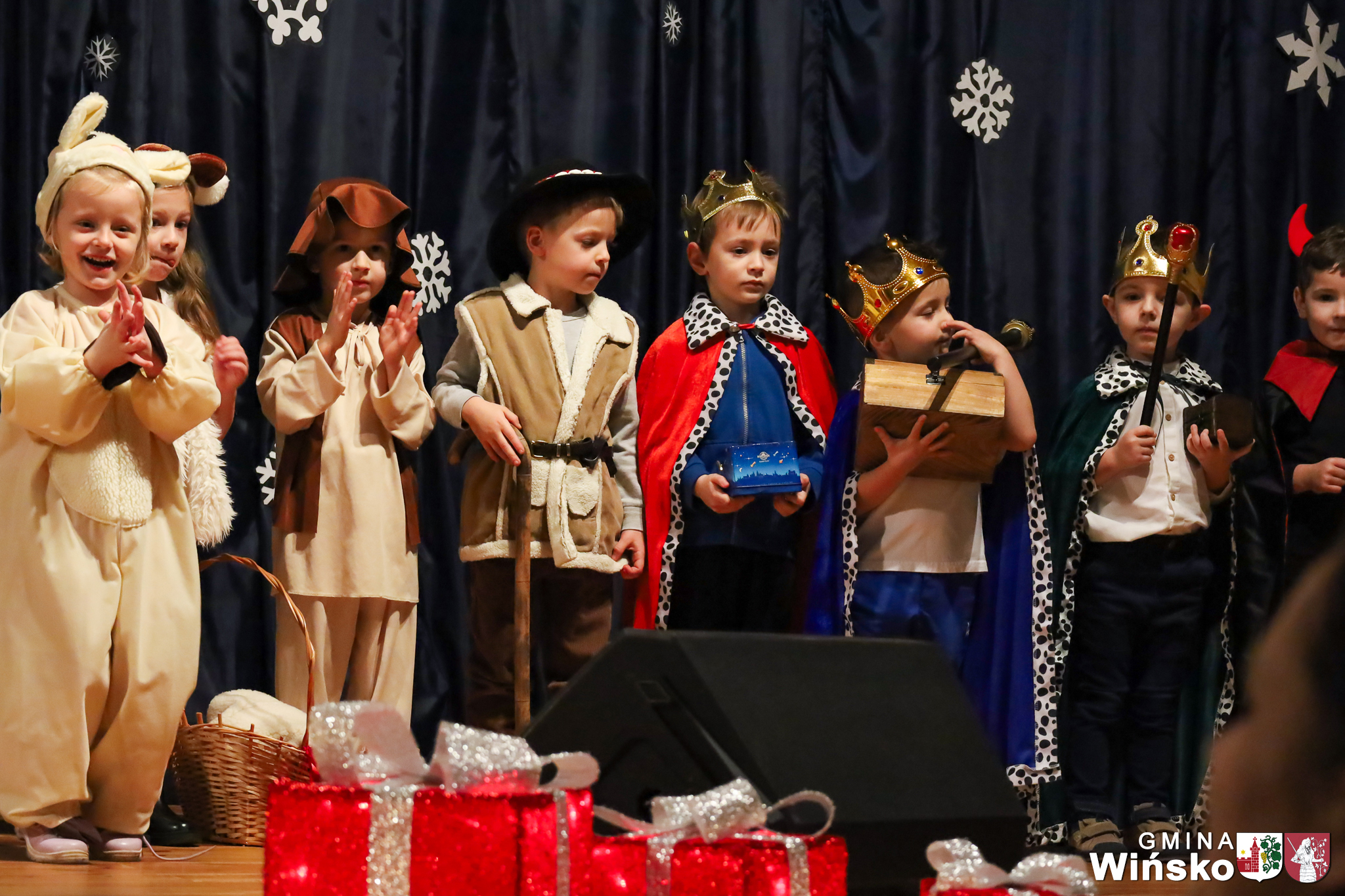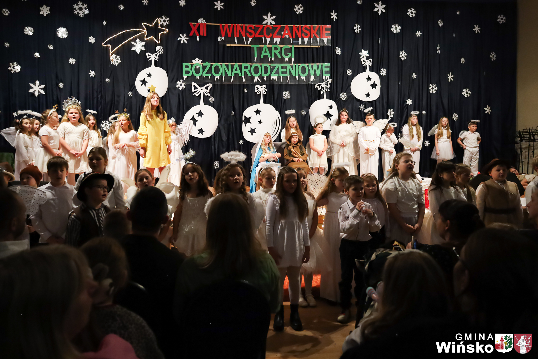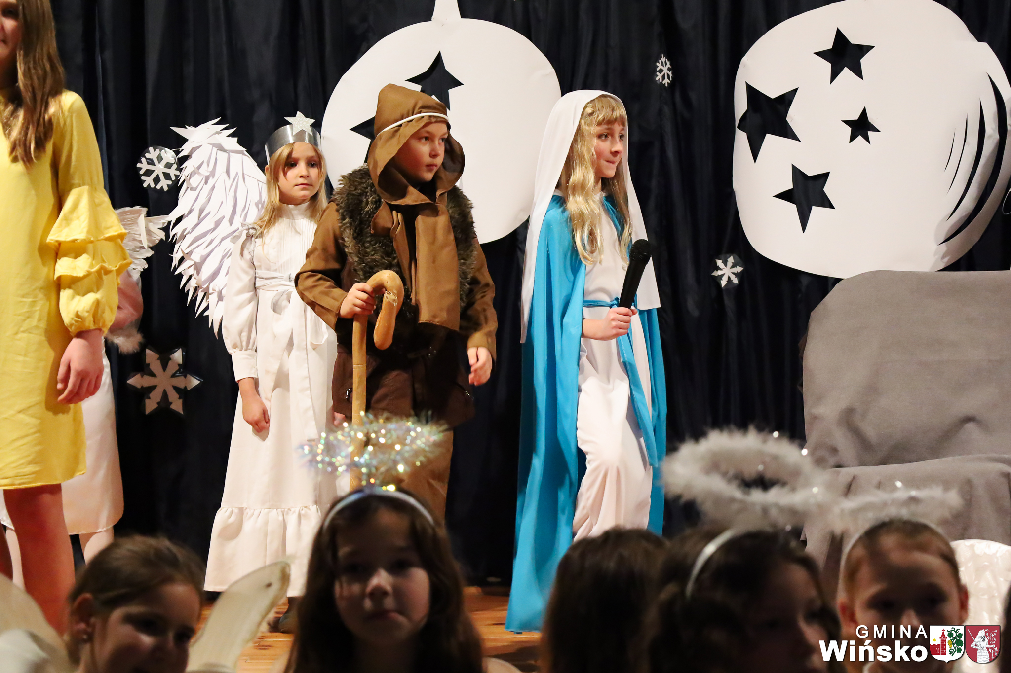 Na scenie wystąpił zespół Harfa, prezentując piękny świąteczny repertuar. Swoje umiejętności zaprezentowali również uczniowie szkół z terenu Gminy Wińsko, a także dzieci z Przedszkola Samorządowego w Wińsku, które oczarowały publiczność jasełkami, kolędami i tańcem. Nie zabrakło także energetycznych występów grup działających przy GOK: Black Fire, White Diamonds oraz Pink Dragons.