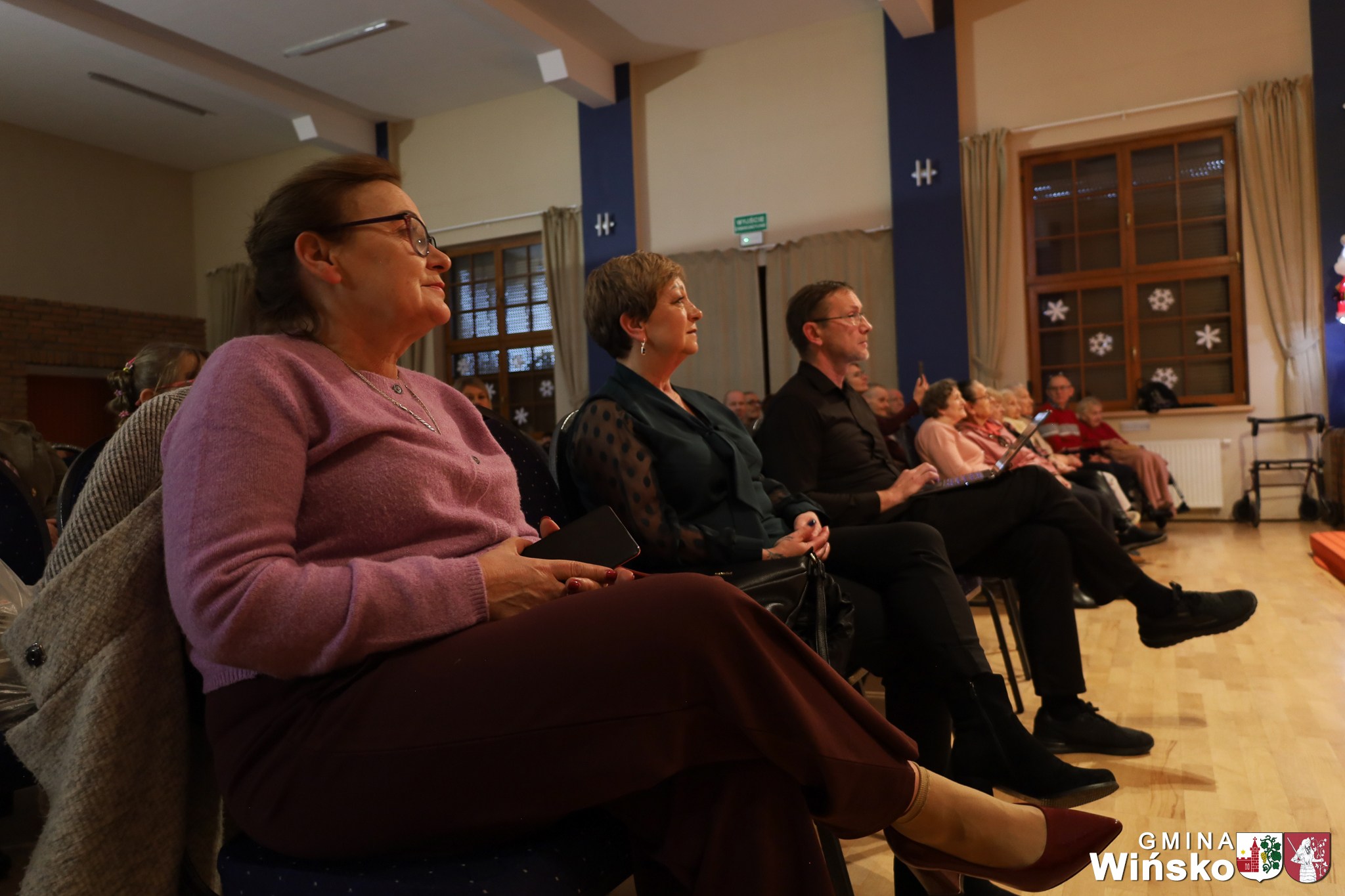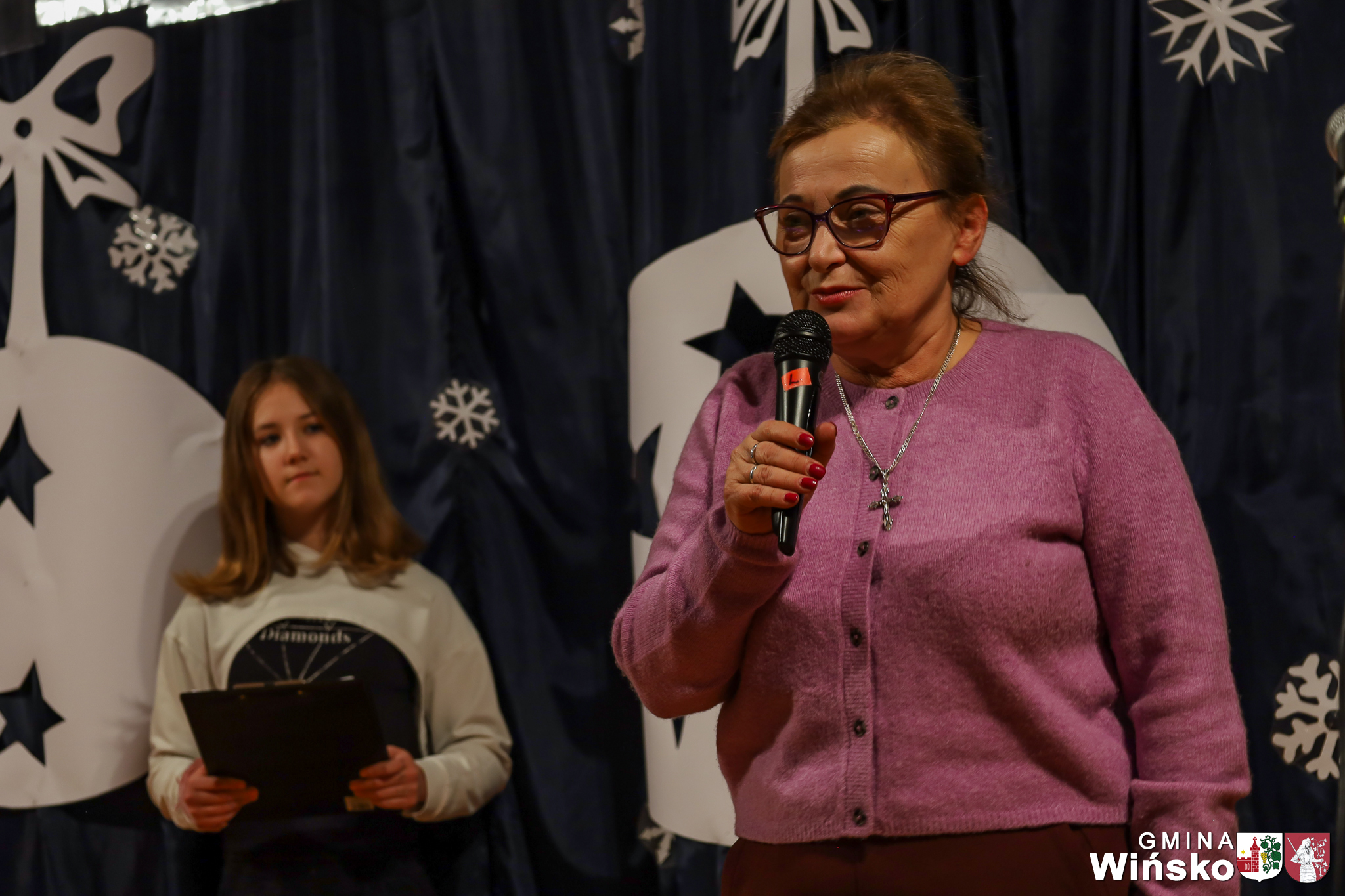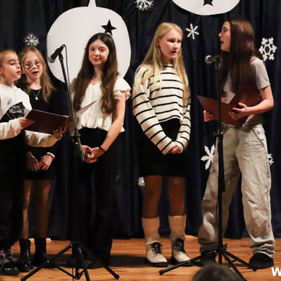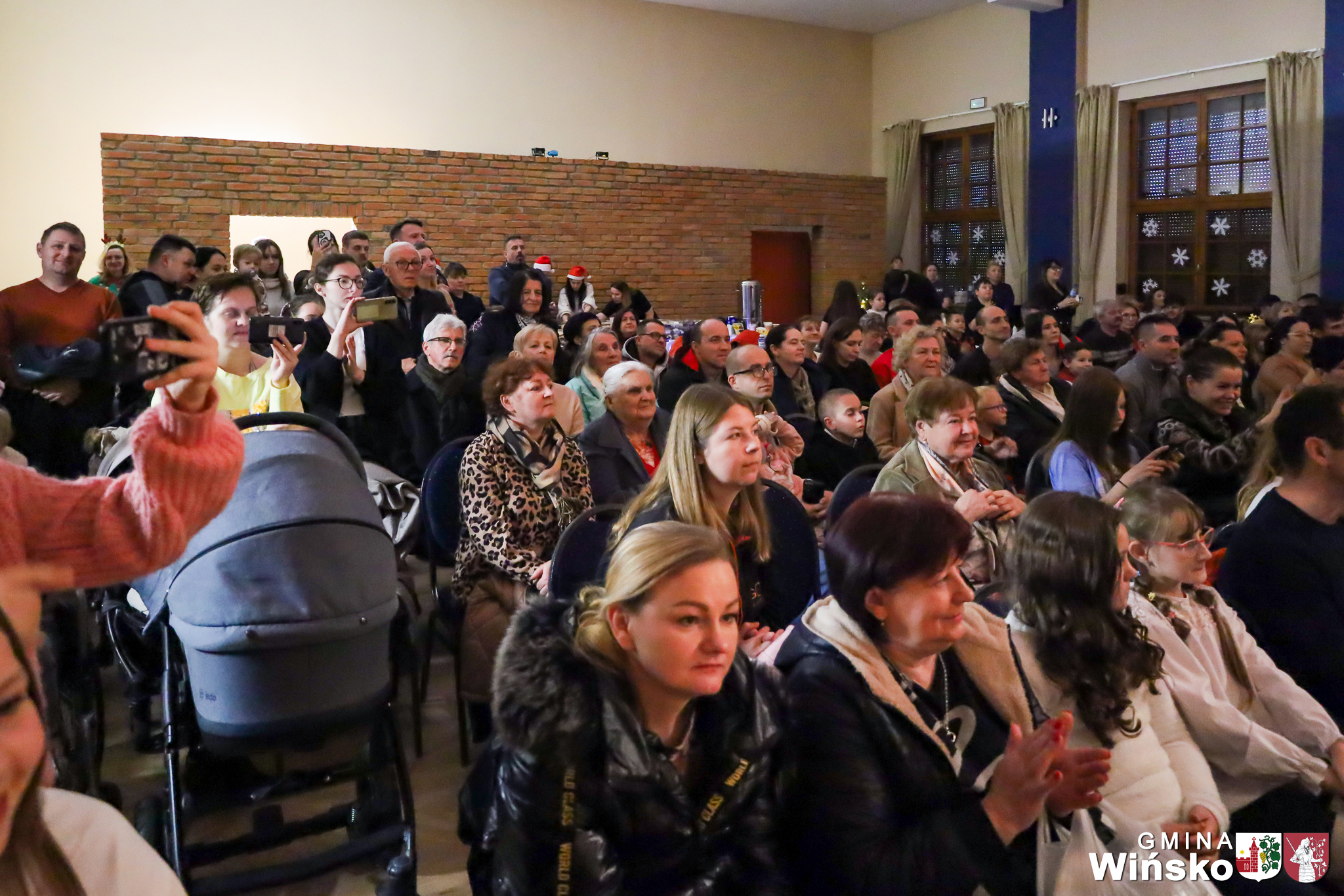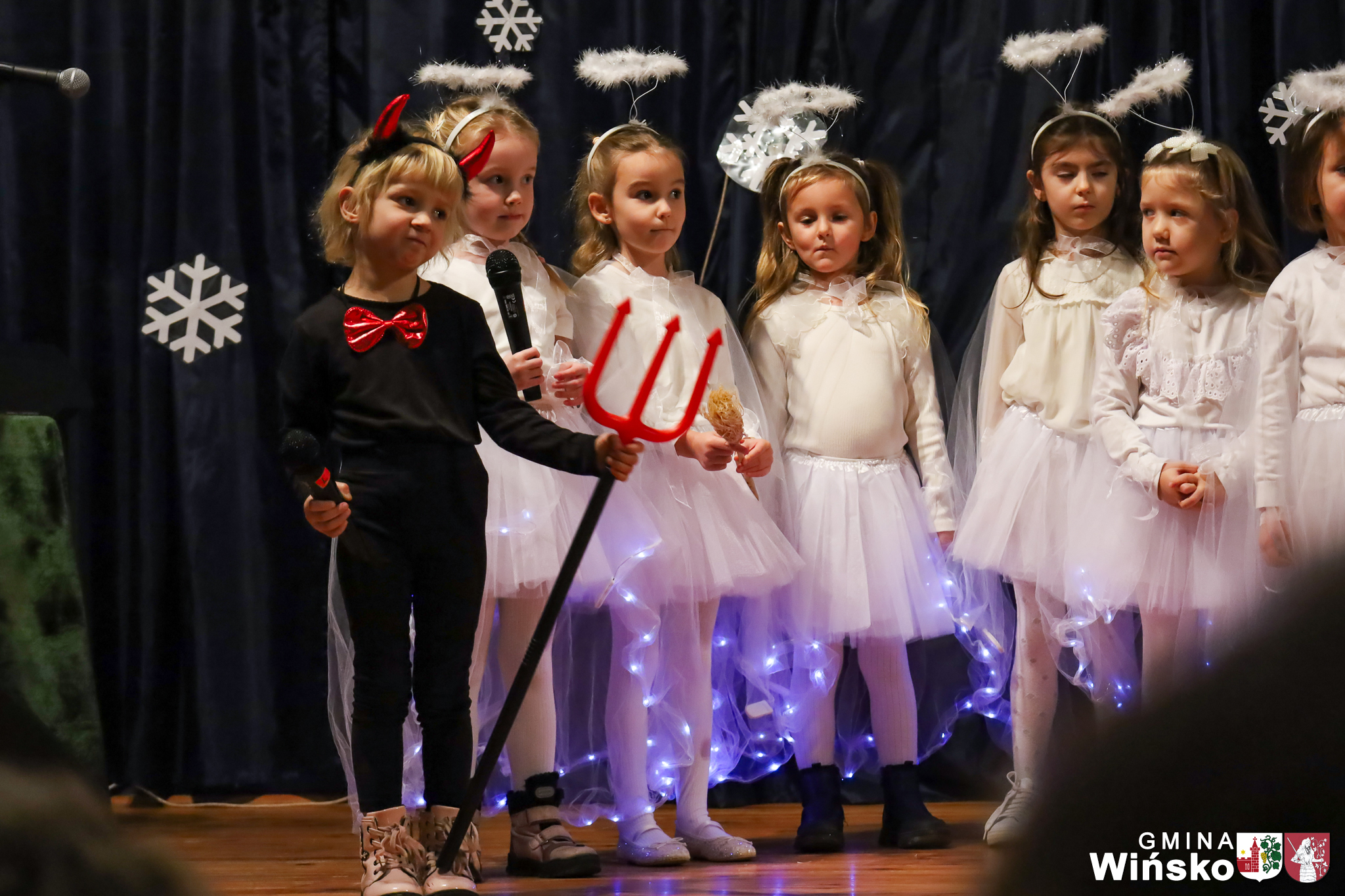 Na scenie wystąpił zespół Harfa, prezentując piękny świąteczny repertuar. Swoje umiejętności zaprezentowali również uczniowie szkół z terenu Gminy Wińsko, a także dzieci z Przedszkola Samorządowego w Wińsku, które oczarowały publiczność jasełkami, kolędami i tańcem. Nie zabrakło także energetycznych występów grup działających przy GOK: Black Fire, White Diamonds oraz Pink Dragons.