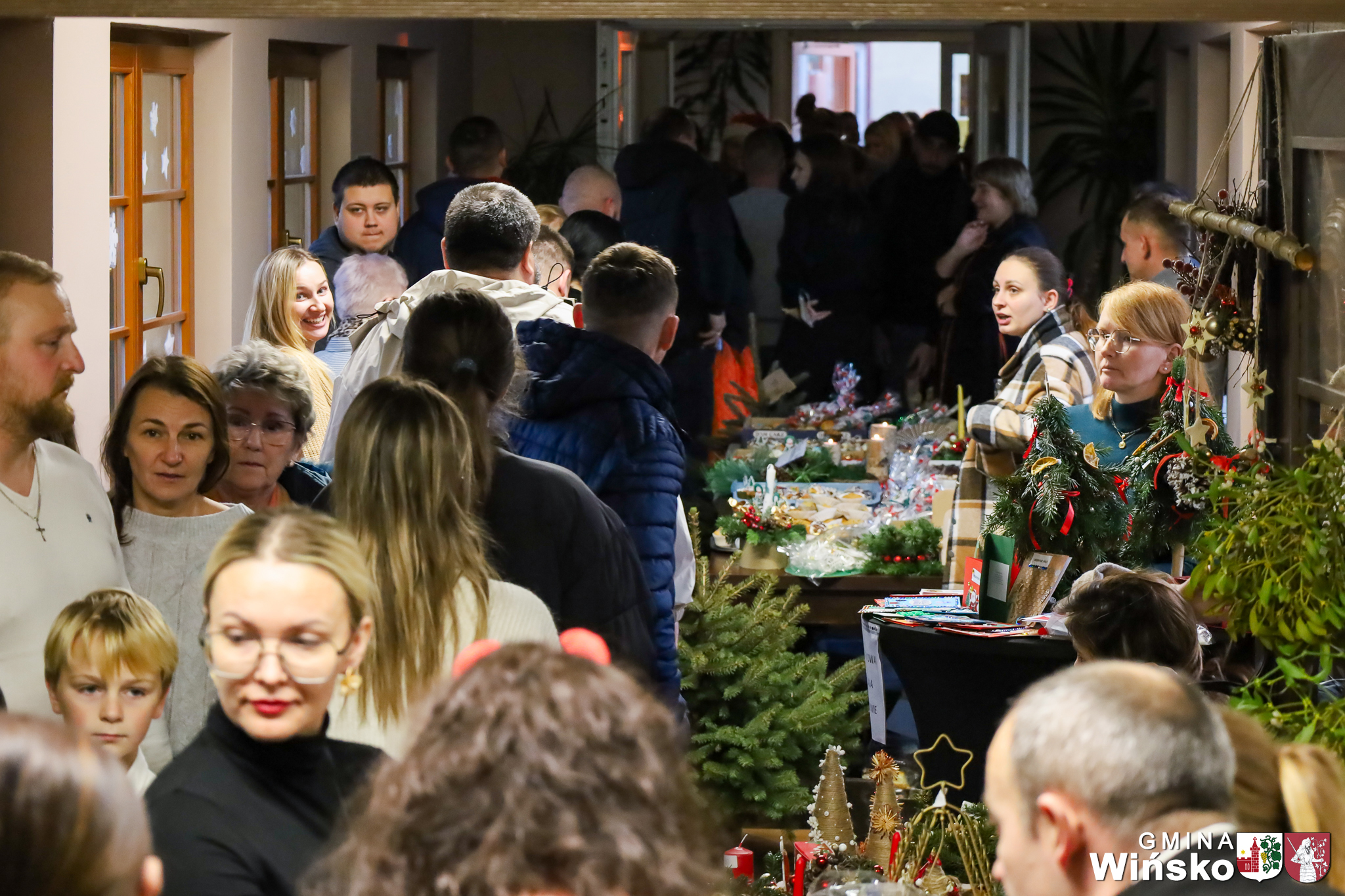 W holu i na korytarzach czekali liczni wystawcy z bogatym asortymentem – od domowych wypieków, pierogów i babeczek, po choinki, ozdoby świąteczne i piękne rękodzieło.